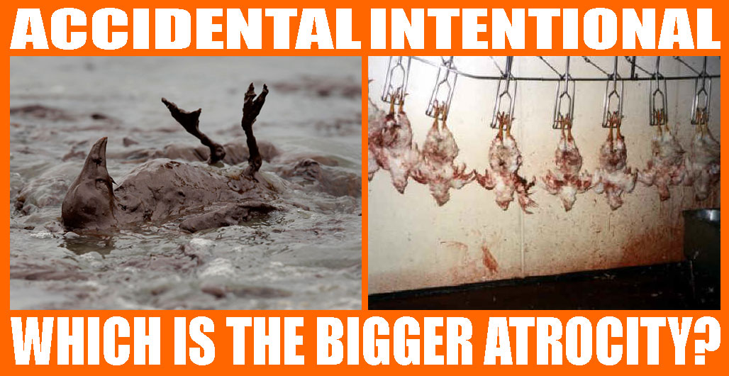 tierrechtsforen.de/5/42550/42551 Re: Ölleck ander mexikanischen Küste Autor: Claude | Datum: 17.06.2010 11:37:06 Folgenden Text fand ich interessant: Zitat: Dead Birds I wrote a long post about this and it somehow got deleted and I don't think I have it in me to write it all out again. I'm going to sum it up now. Photos of the birds suffering and dying in oil are horrible. I agree. I've seen these photos linked on Facebook quite a bit recently. It makes me sad too and I understand the urge to post the photos and make sure others know what's going on. It's important to share in the communal outrage. I feel that outrage. But I also feel something else. On one hand, it's frustrating to see outrage over the photo on the left and silence when it comes to the photo on the right. On the other hand, the amount of concern for the animals affected by the oil leak proves that people can and do care about animals even if they don't personally know them. This gives me hope. I wish that everyone could connect the dots and realize that the animals we exploit on purpose are every bit as sentient, thinking and feeling as the Brown Pelican drowning in oil. There is no moral distinction between the bird on the left and the birds on the right. Both deserve the right to live free from unnecessary suffering and death. Both deserve our consideration and sympathy and empathy. Both live(d) brutal existences (one accidental, one intentional) caused by humans. The big difference between these two situations is that one is an accident and other is on purpose. Billions upon billions of animals unnecessarily suffer and die every year on purpose. Which do you feel worse about? But more importantly, why? http://thislittlepiggyhadtofu.blogspot.com/2010/06/dead-birds.html